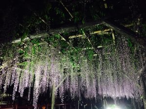 亀戸天神の藤です。ライトアップされて綺麗でした。