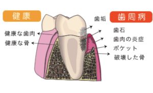 しかし、歯周病が進行すると歯周ポケットが深くなり、歯根膜が破壊されると細菌が歯根膜と言うバリアを破って体内に侵入しようとします。