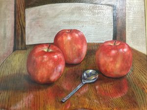 おそざわ歯科には、院長が描いた油絵が展示されています。代表作は『りんごとスプーン』やラッセン風の絵があります。15年前から始め、5年ぐらいのめり込みました。銀座の画廊に毎年出品していました。