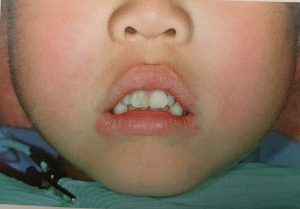 口の周りの筋肉が弱い、口唇が乾燥している、口角が荒れている、上唇が上向きにめくれているなどの特徴があります。