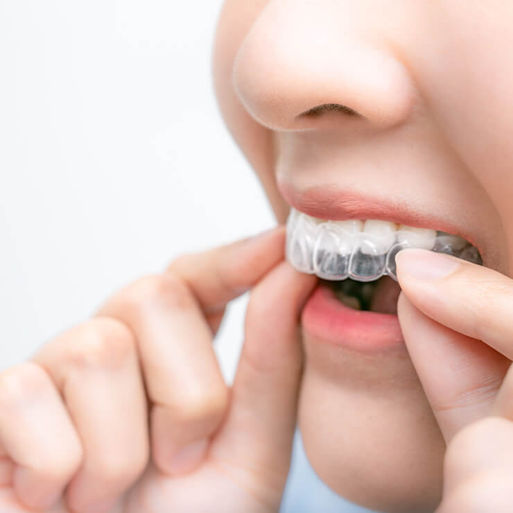 透明なマウスピースを使用した歯列矯正治療をご提供しています。マウスピース矯正は、目立たずに歯並びを改善することができる人気の治療法です。患者様に合わせたオーダーメイドのマウスピースを作成し、一定期間ご着用いただくことで、徐々に歯並びを整えていきます。マウスピースは取り外しが可能であり、食事や歯磨きなどの日常生活にも影響を受けません。また、透明で目立たないため、外見に気を使いたい方にもおすすめです。下記、マウスピース矯正のメリット・デメリットと費用を記載しております。併せてご覧ください。